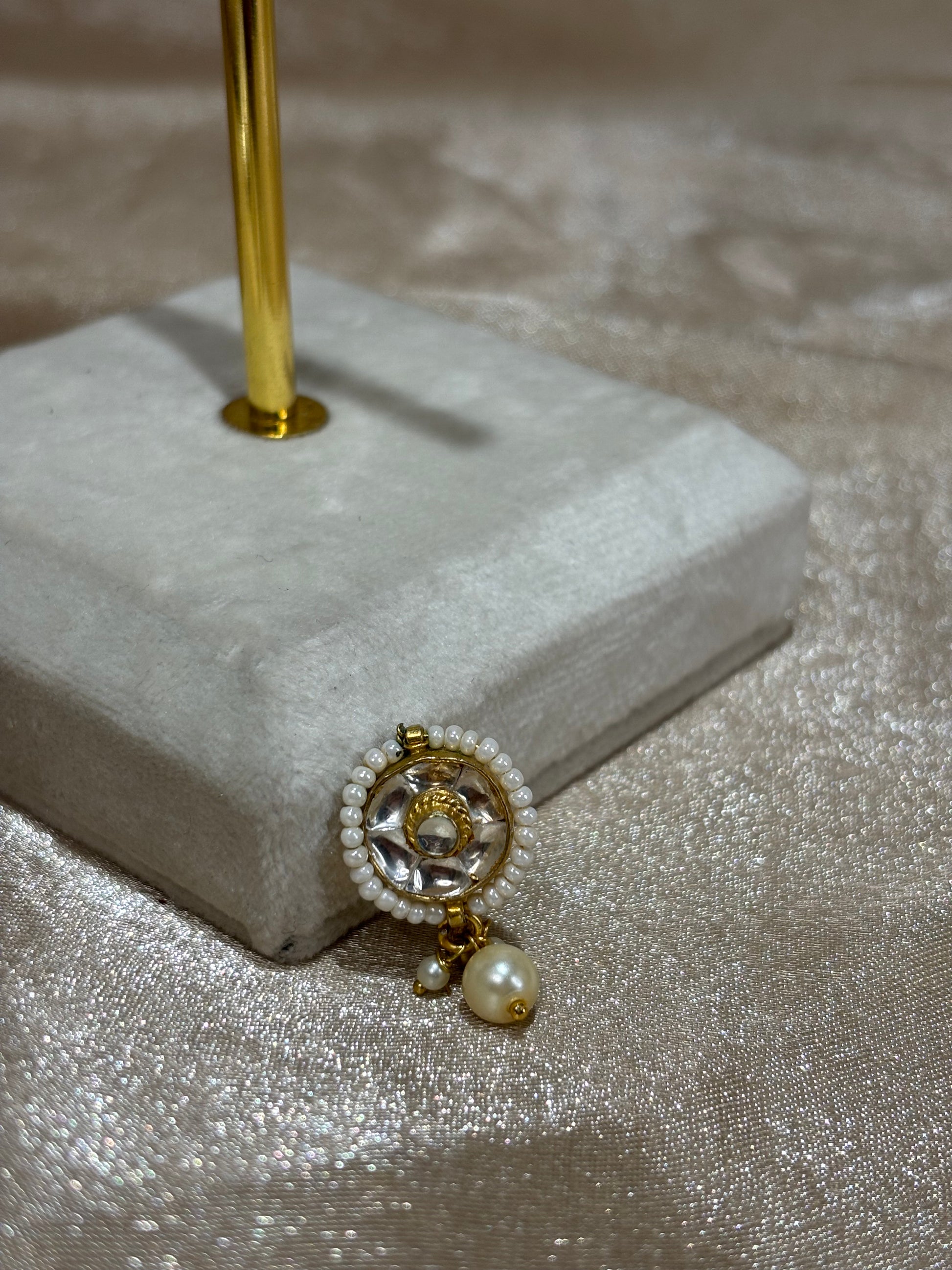 Clip on Pachi kundan statement nose stud with small pearl detail