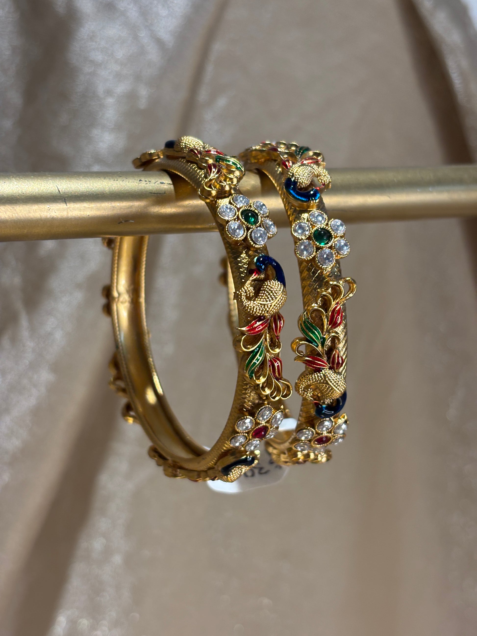 peacock/morni detail Kare with kundan detail; comes in a set of 2