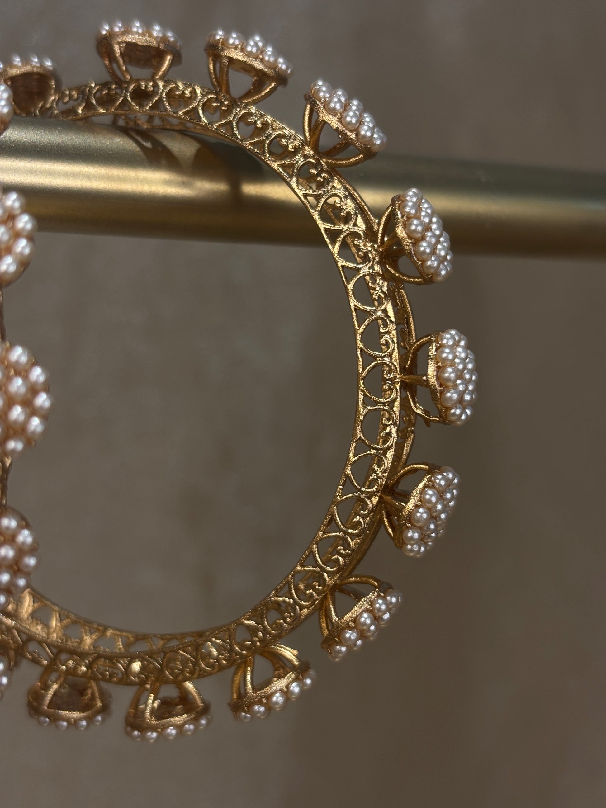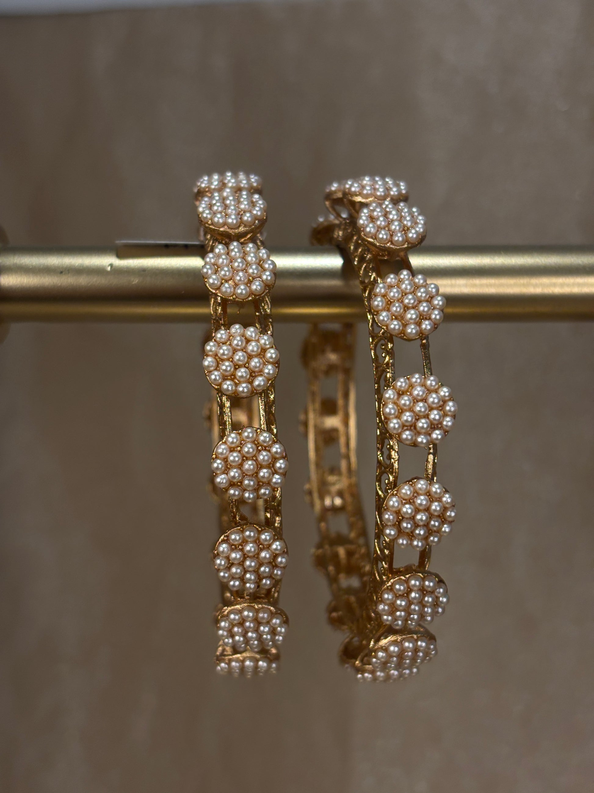 Yellow gold pearl detail kare/pacheli (kare are higher than normal; meant for ends of bangle sets); comes in a set of 2