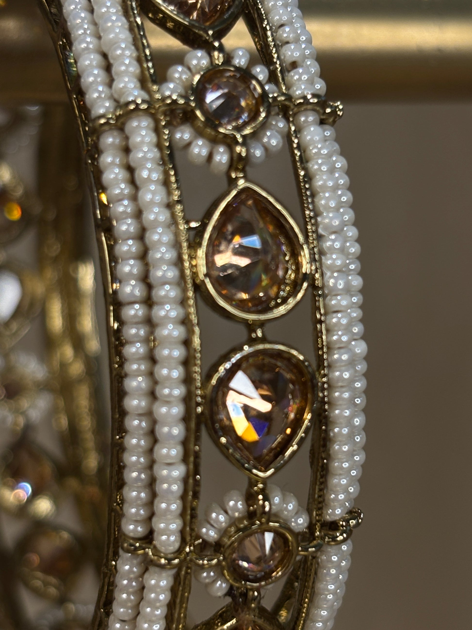 Heavy pearl detail Polki kare in gold; comes in a set of 2