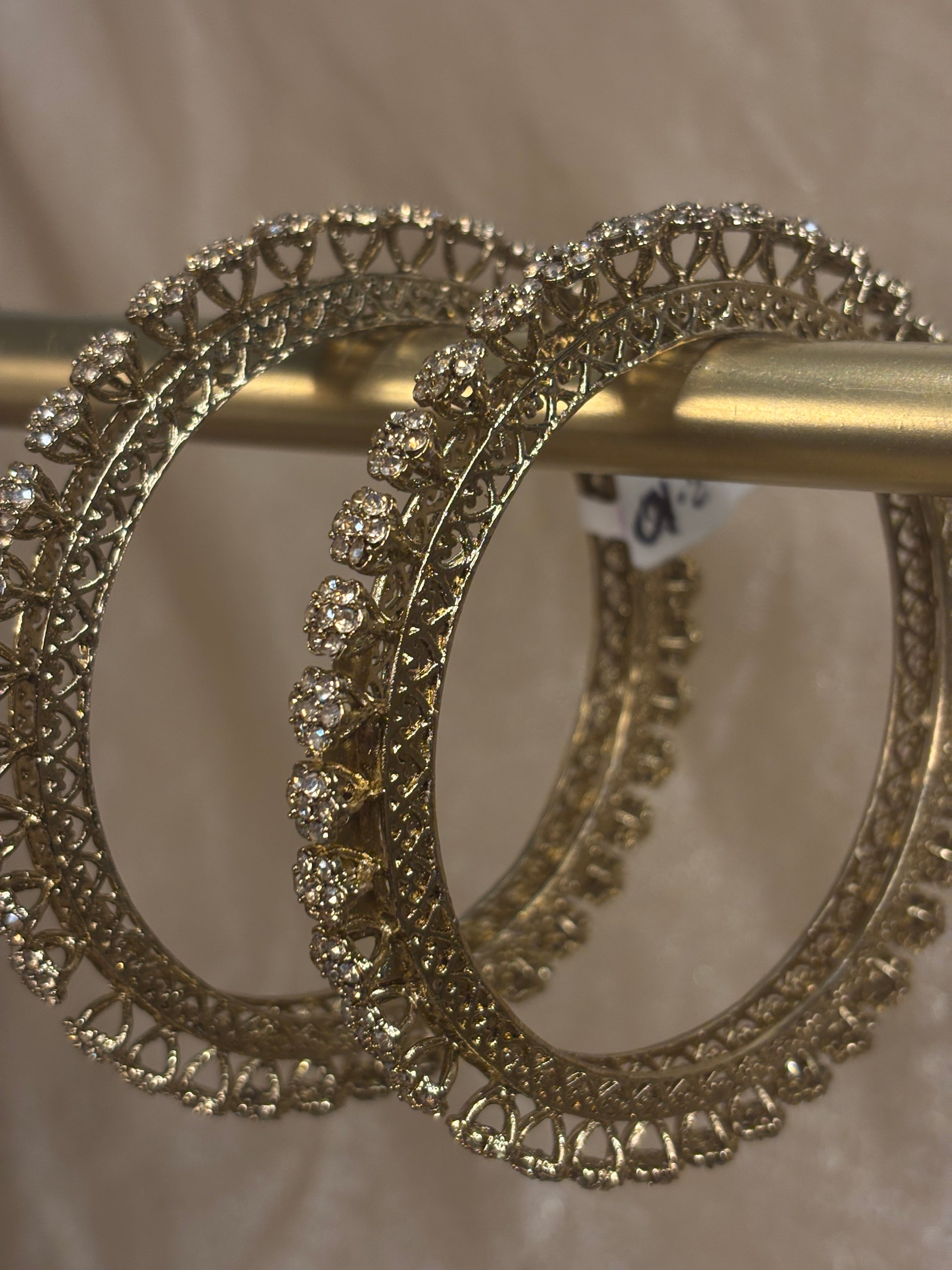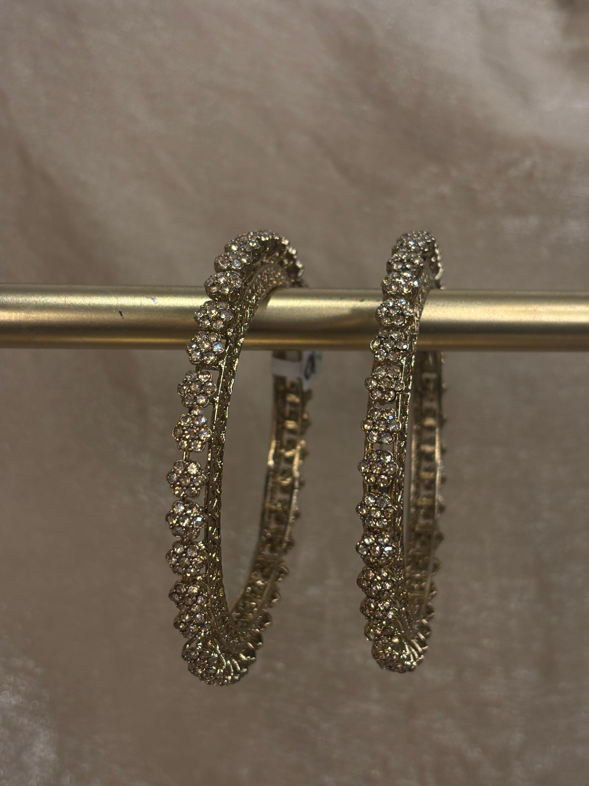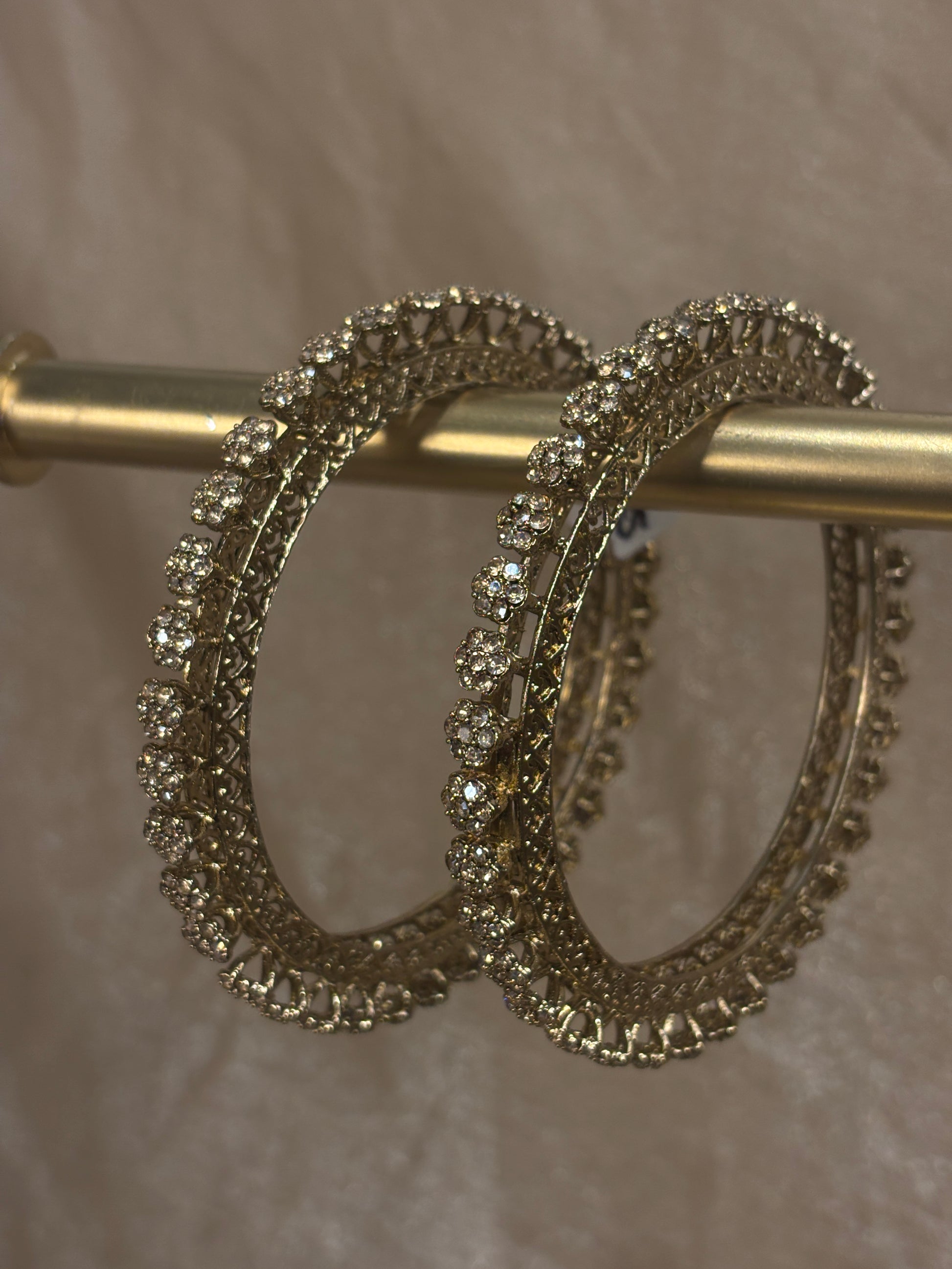 Polki pacheli (raised kare) with flower details. Is a set of 2; comes in sizes 2.4, 2.6, 2.8, 2.10