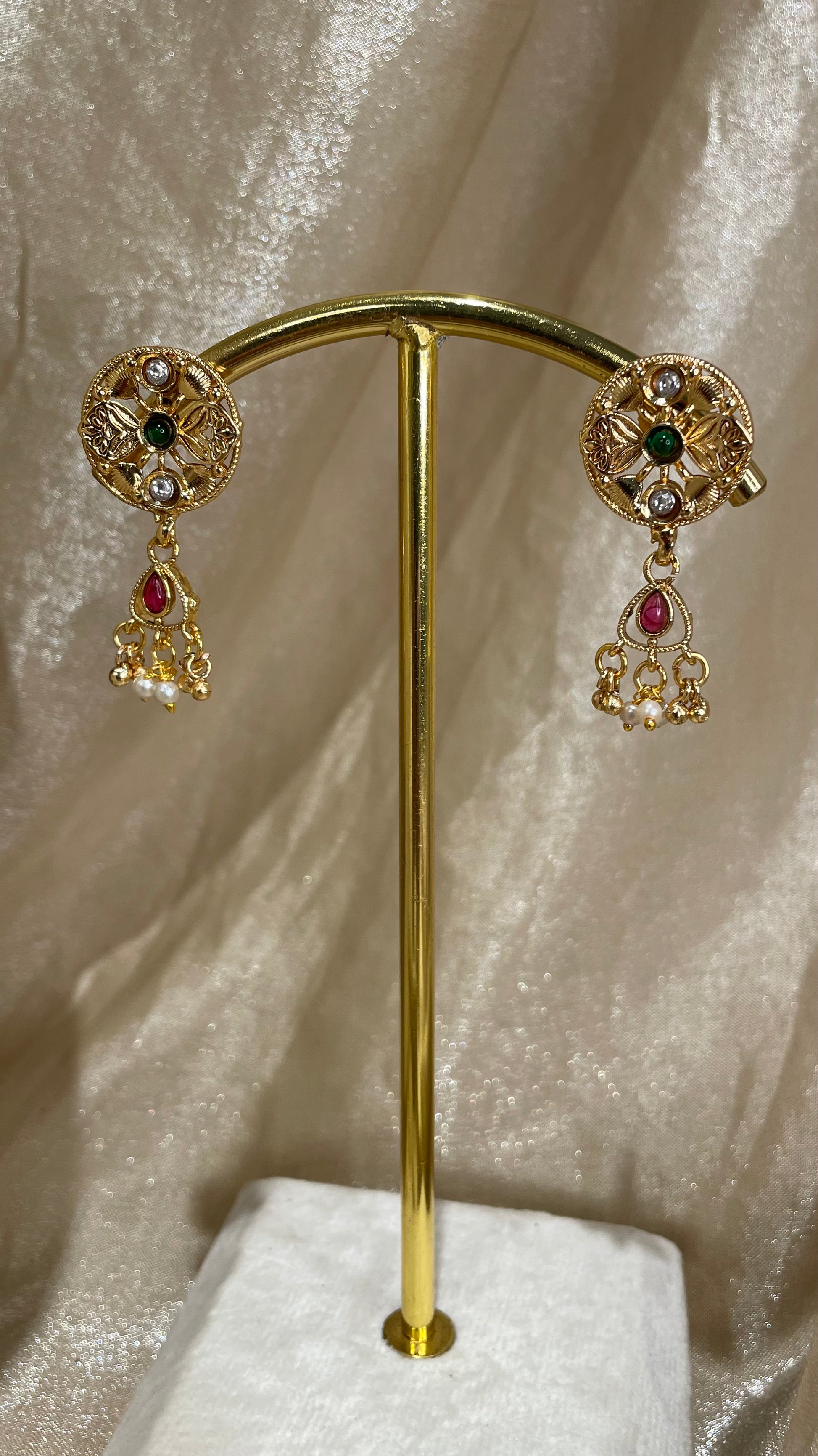 rajwadi choker set with maroon and emerald green details; comes with earrings