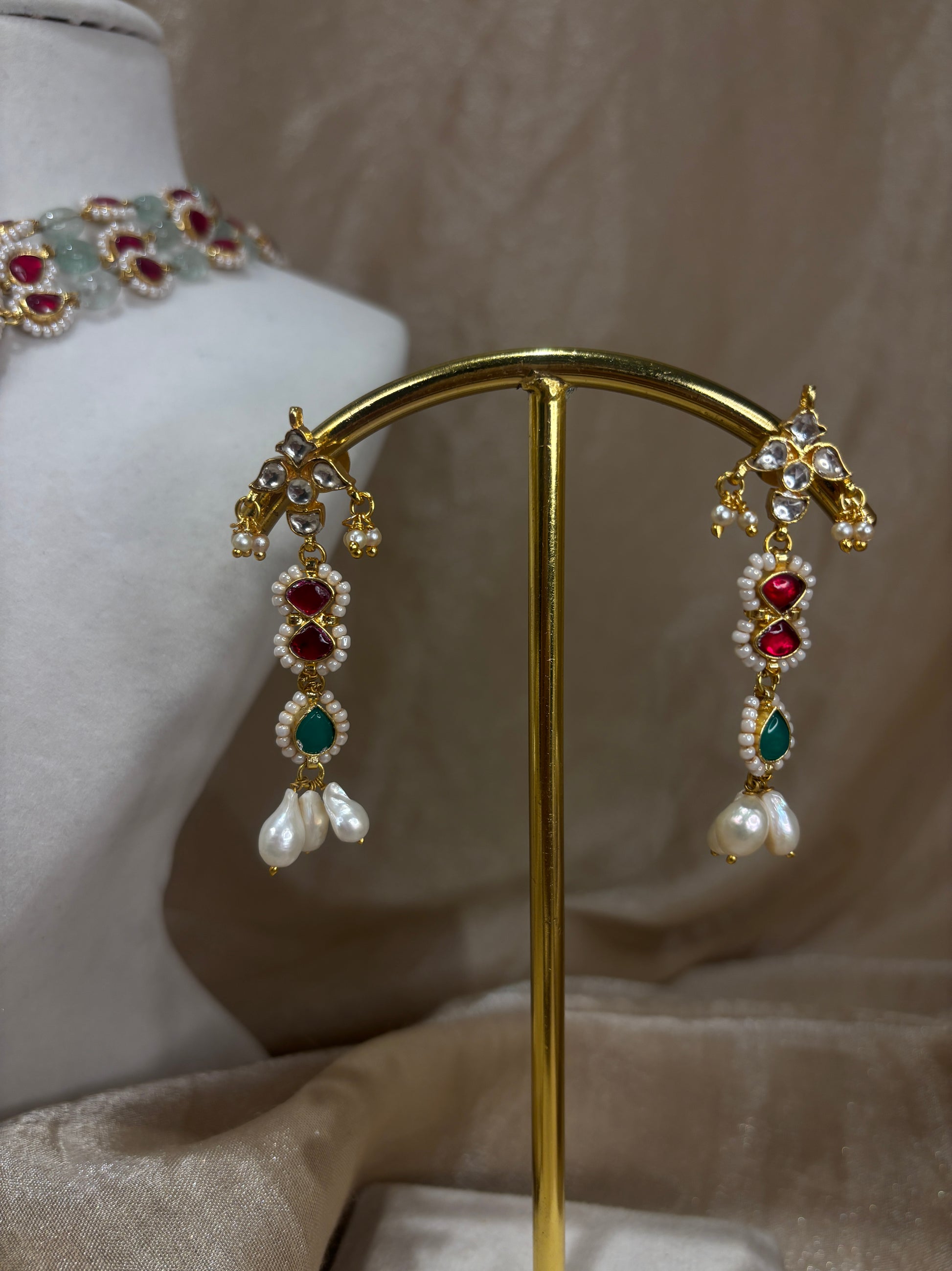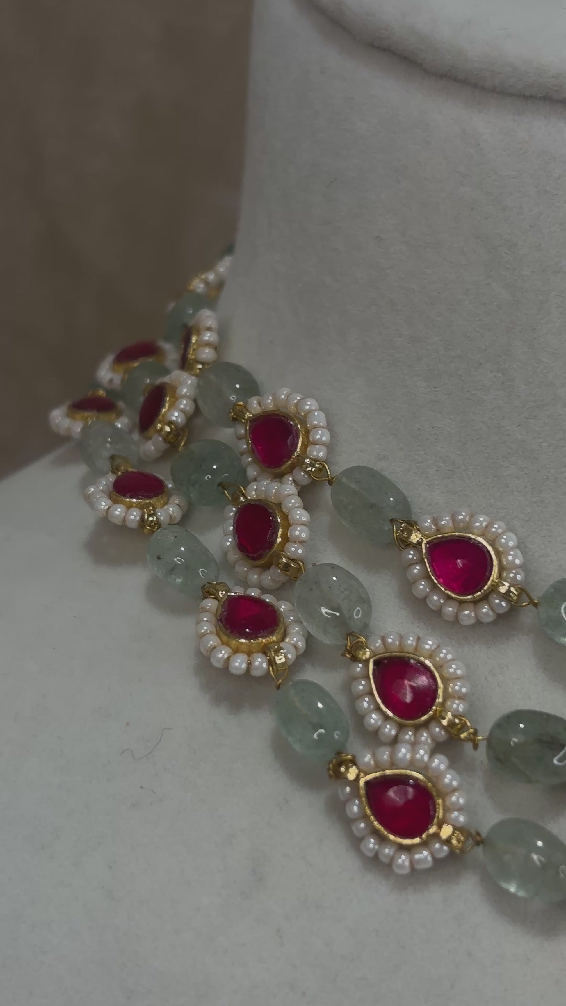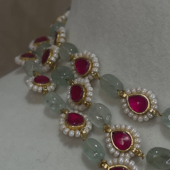 22k gold plated ahmedabadi pachi kundan neckalce with mint/sage green and red accents; comes with earrings