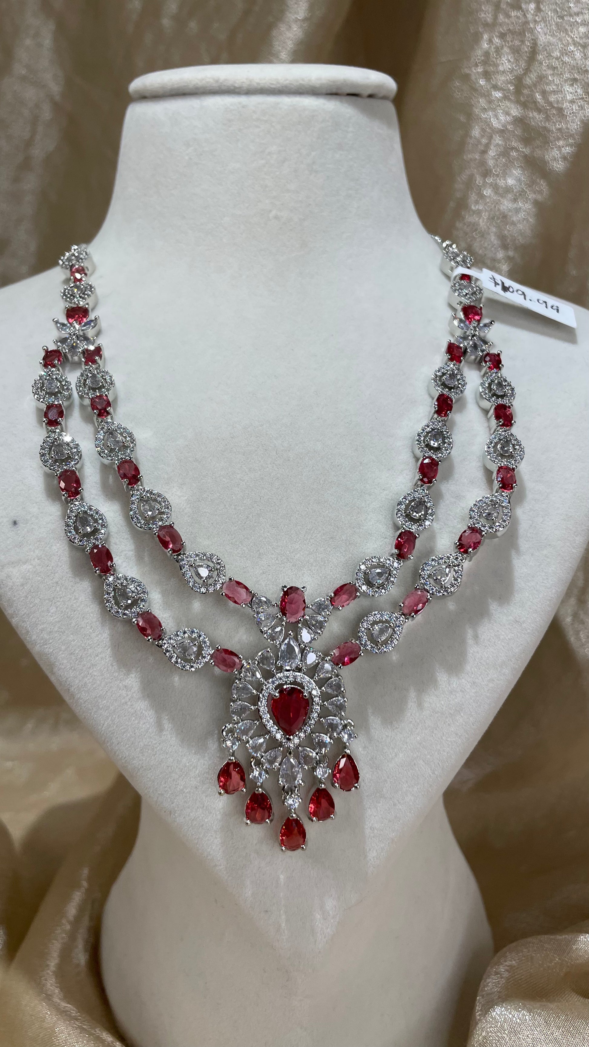ruby red 2 layered american diamond necklace set; comes with earrings