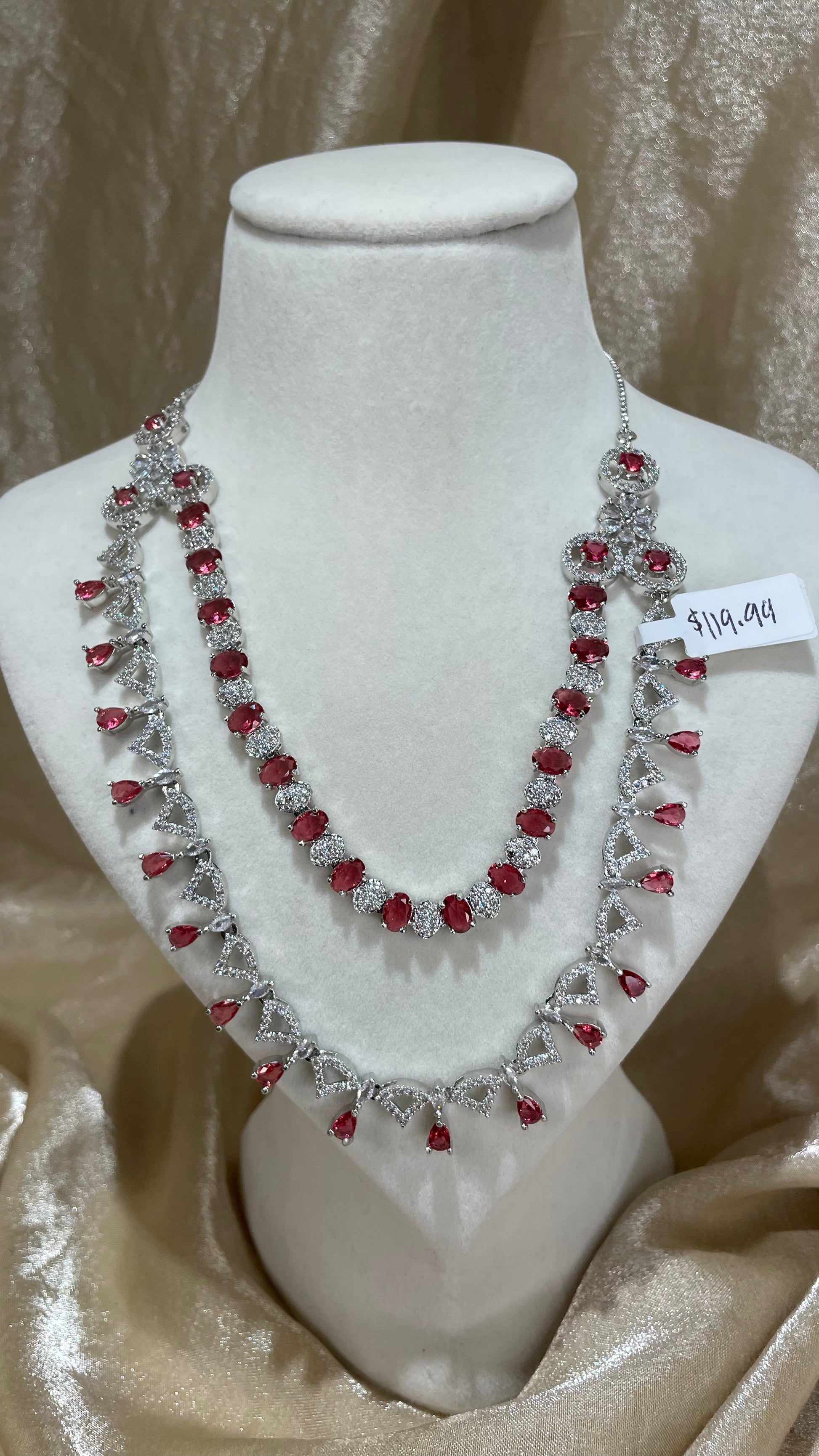 ruby red 2 layered american diamond necklace set; comes with earrings