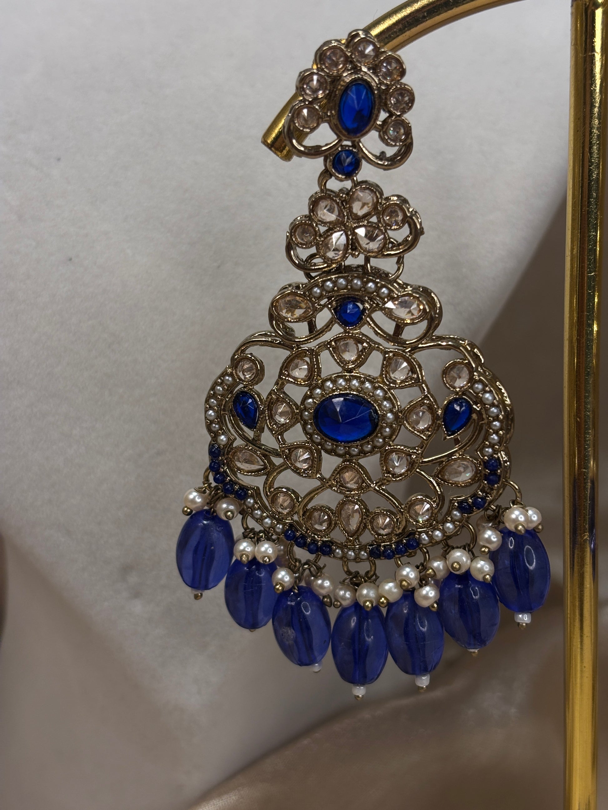 Bright royal blue choker with pearl details; can also be worn as a neckace