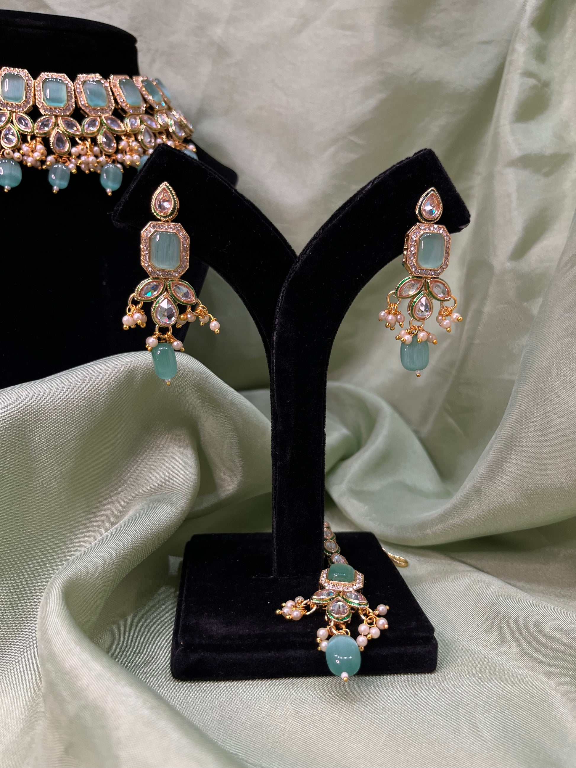 Sea green Mona Lisa choker set