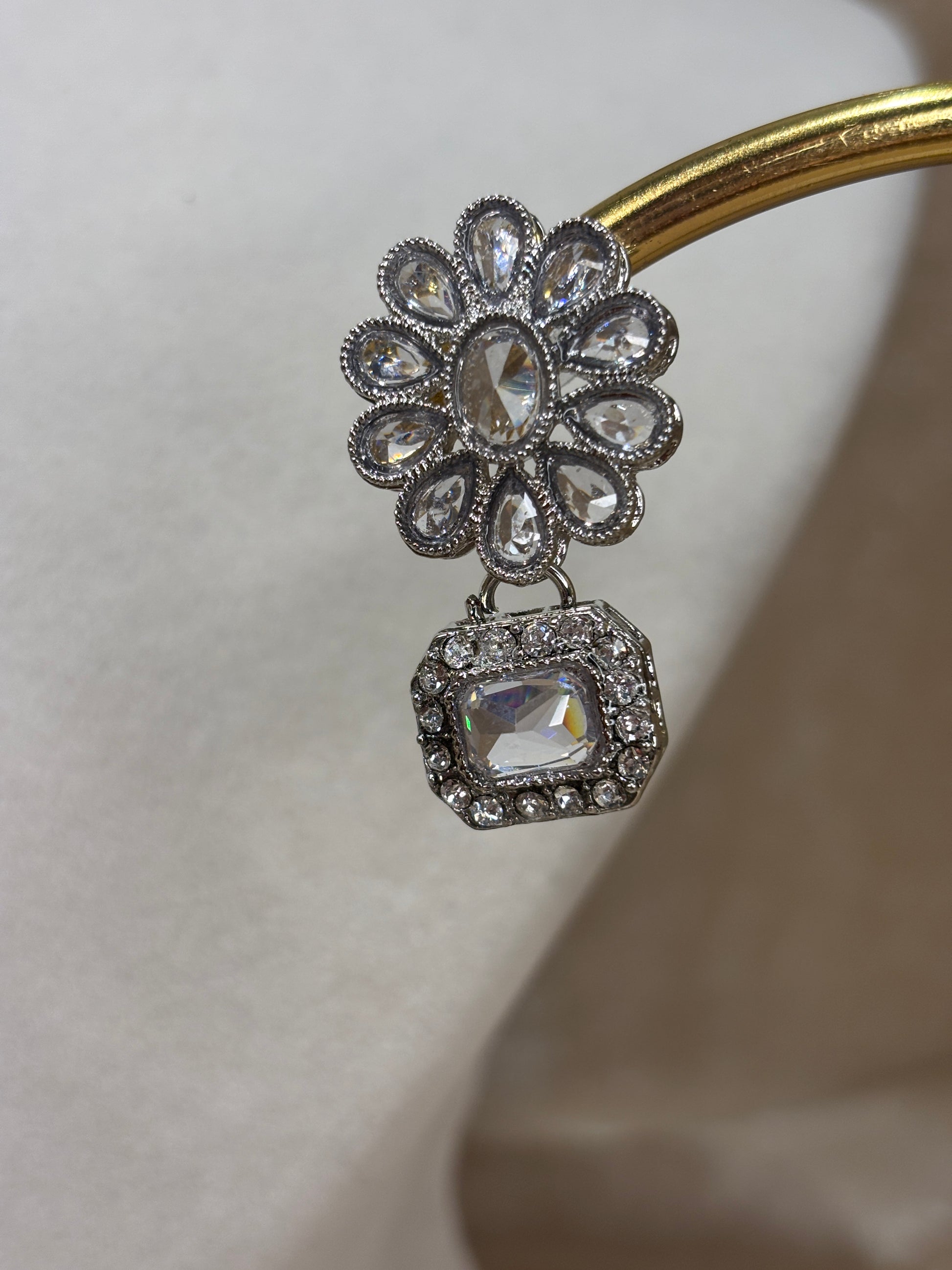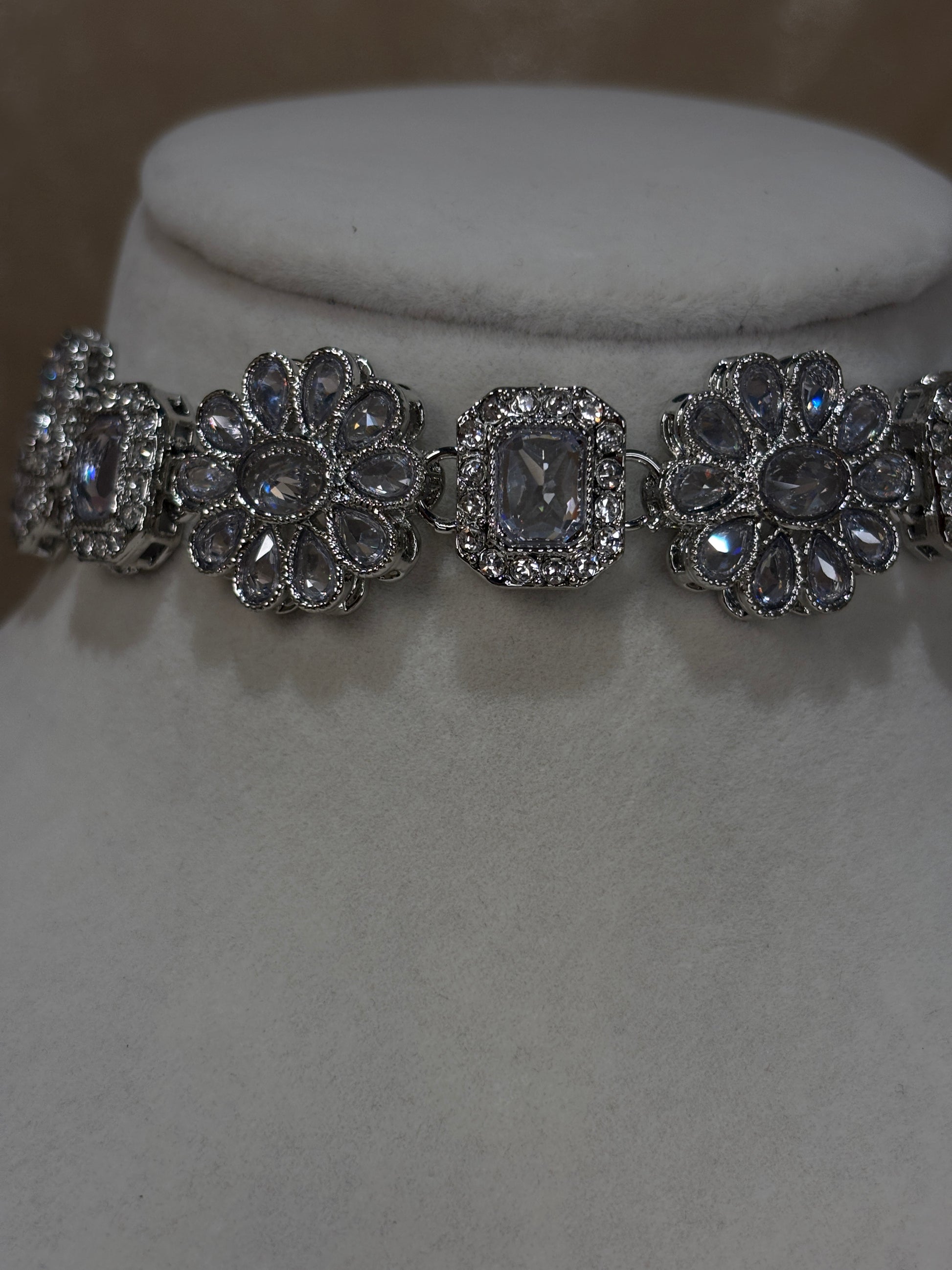 Dainty silver choker set with flower details; can be worn as a choker or necklace