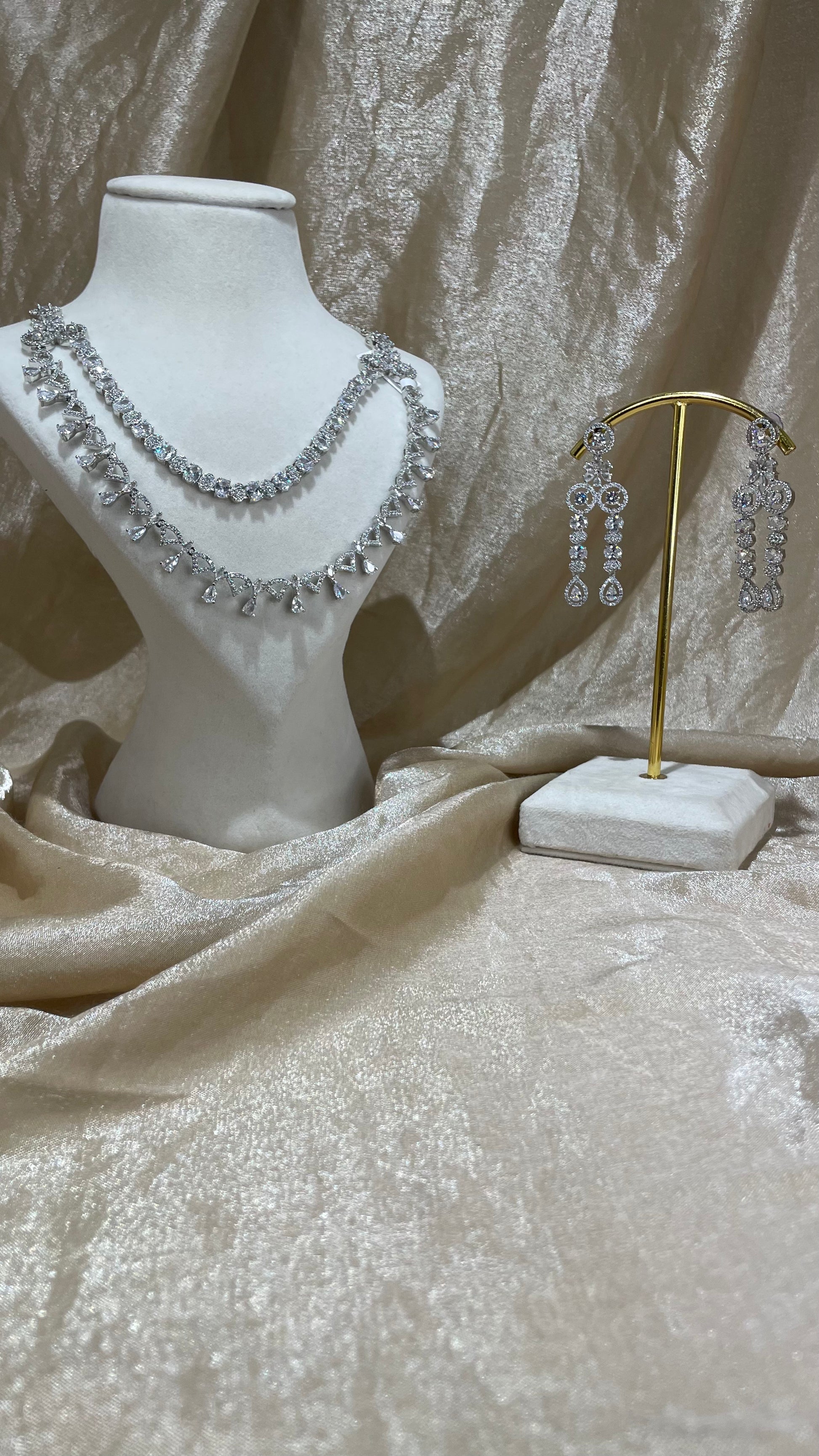 2 layer silver American diamond necklace set; comes with earrings