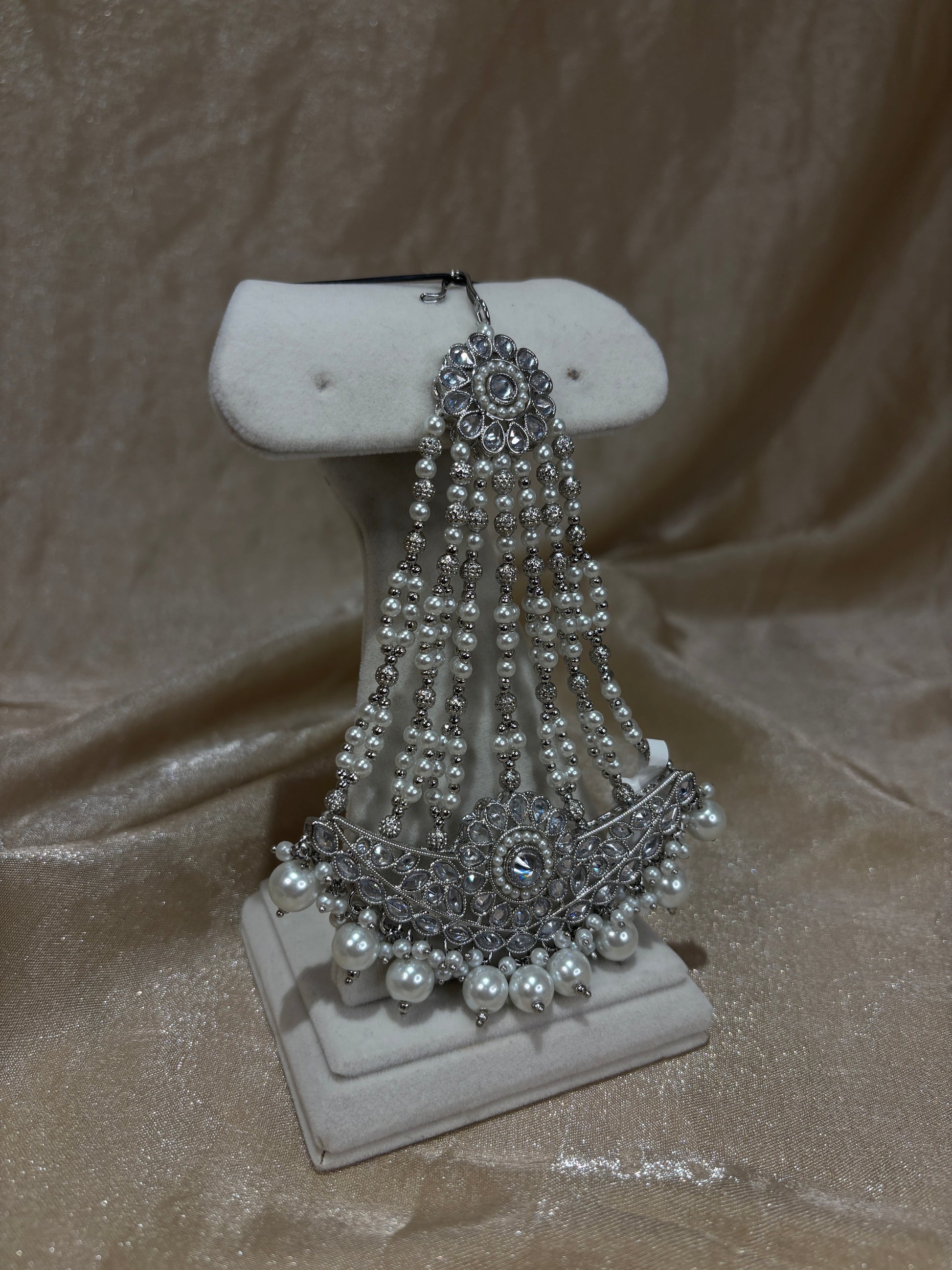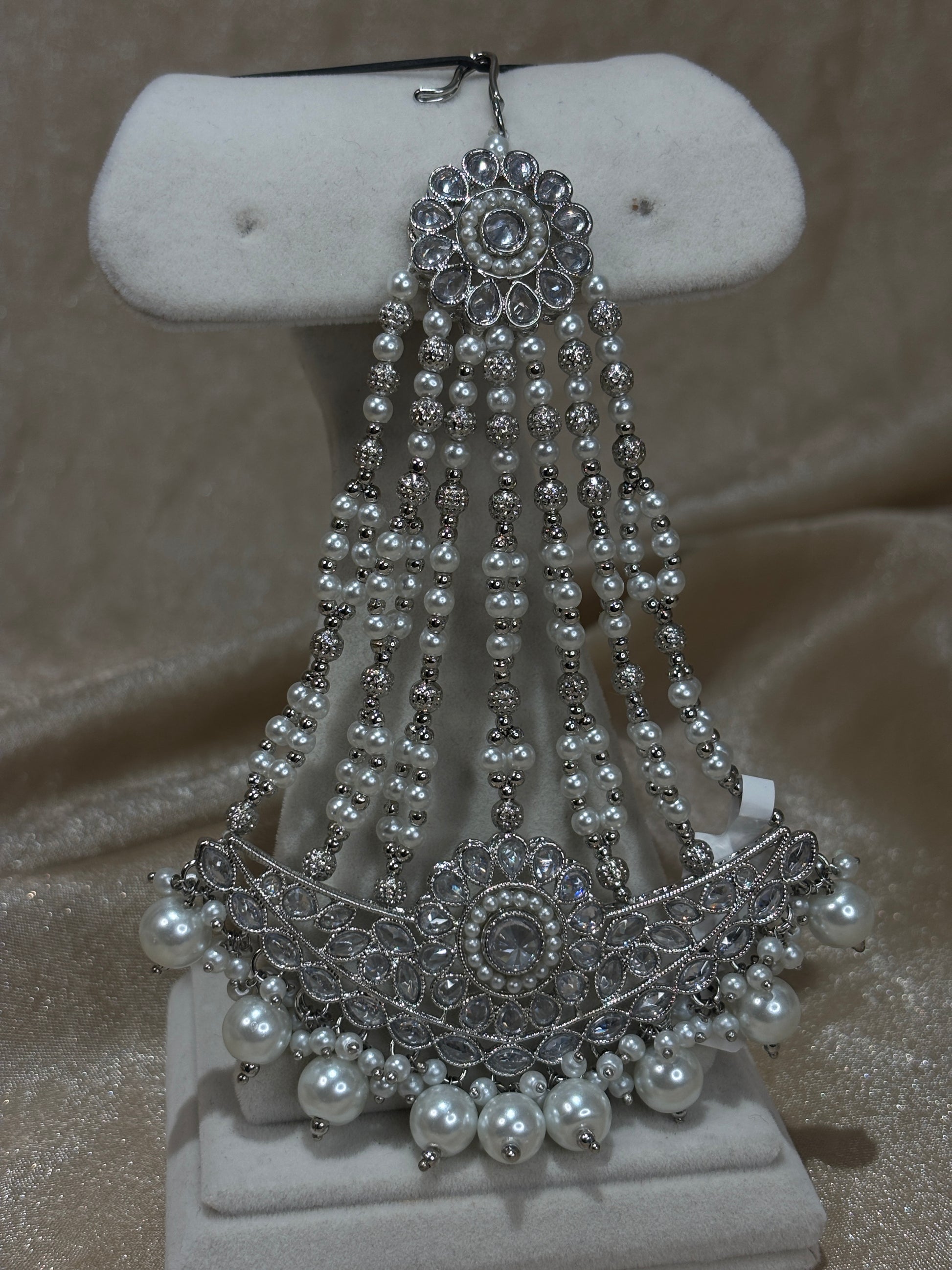 Silver pearl detail passa; about 5 inche long and 3.5 inches wide