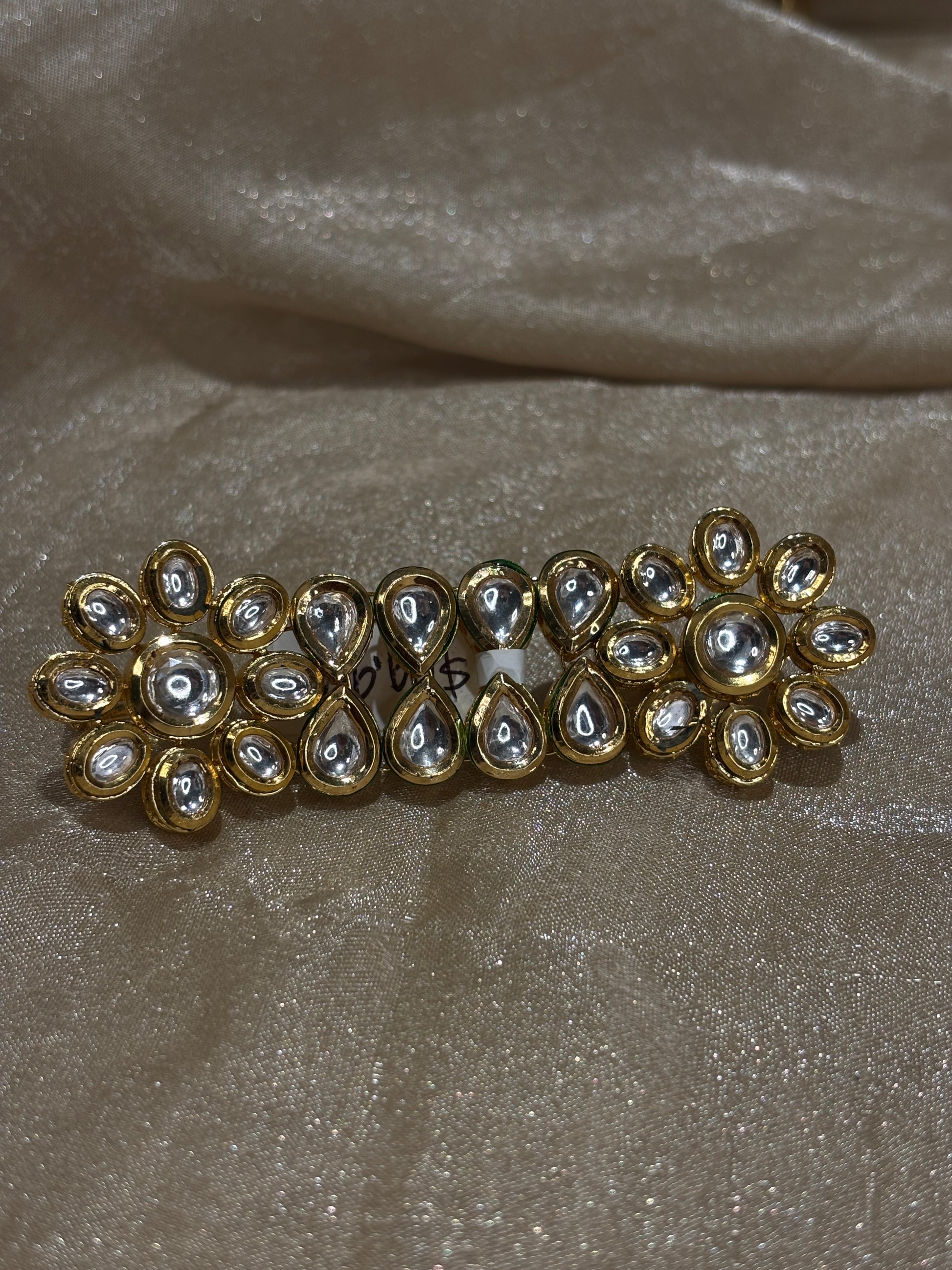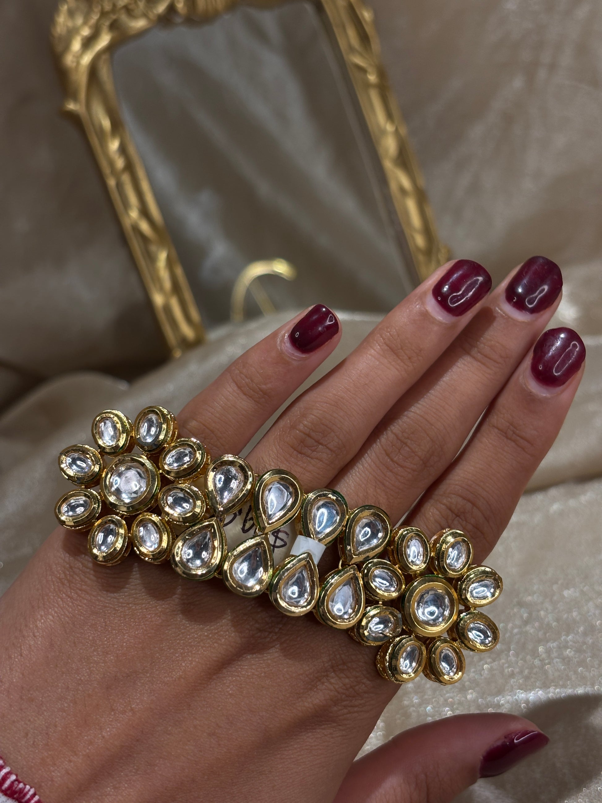 statement kundan ring with floral detail; meant to be worn on index and pinky ring