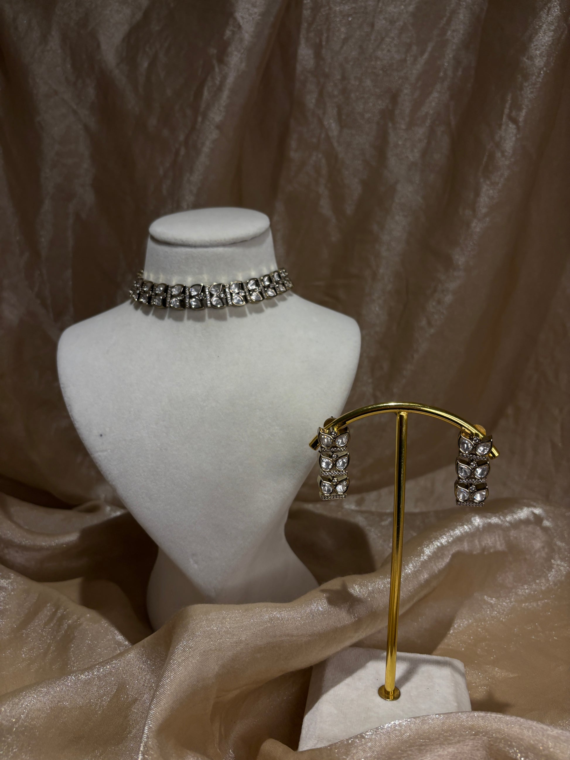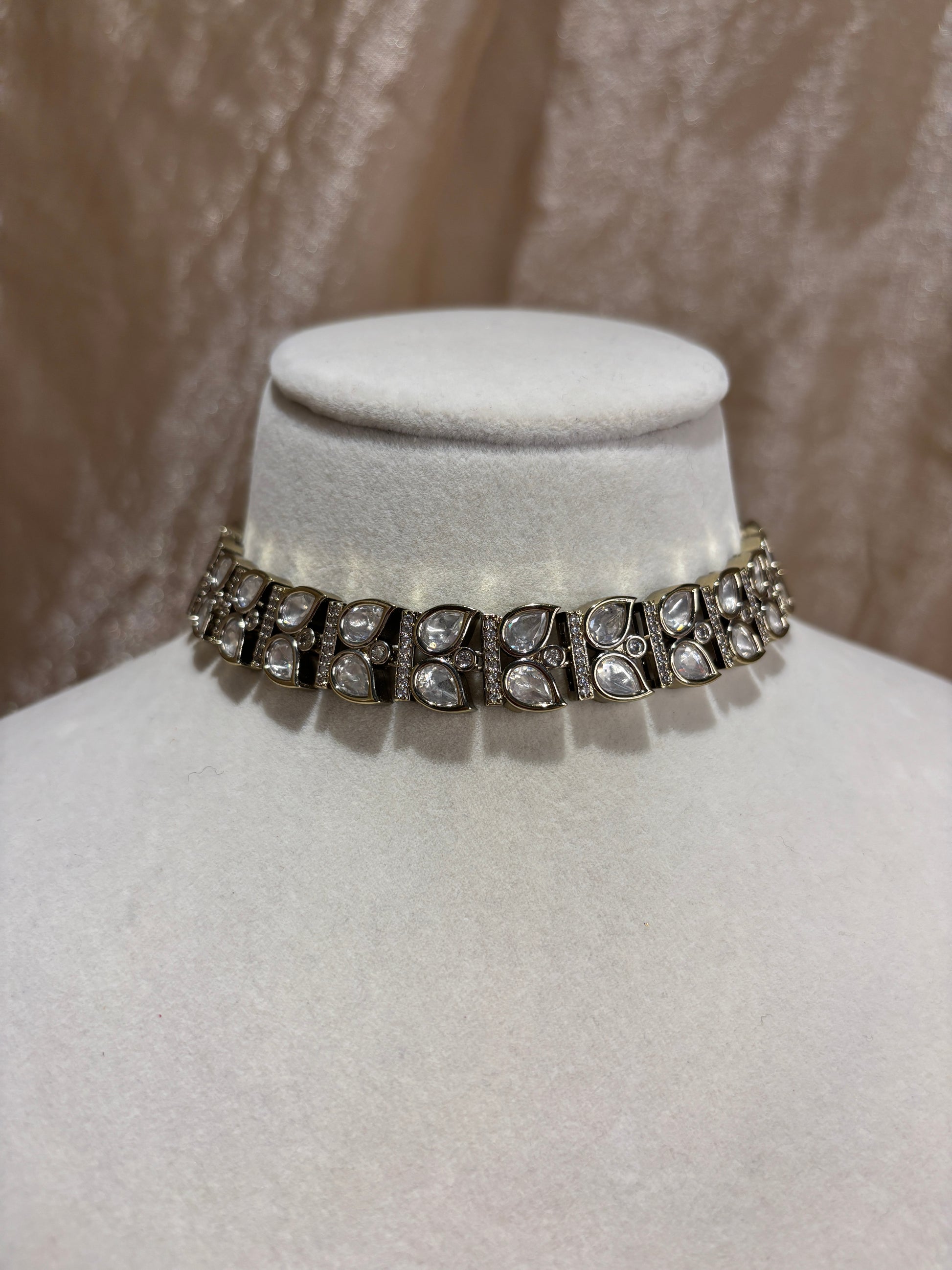 Tiyani kundan choker with leaf details; can also be worn as a necklace