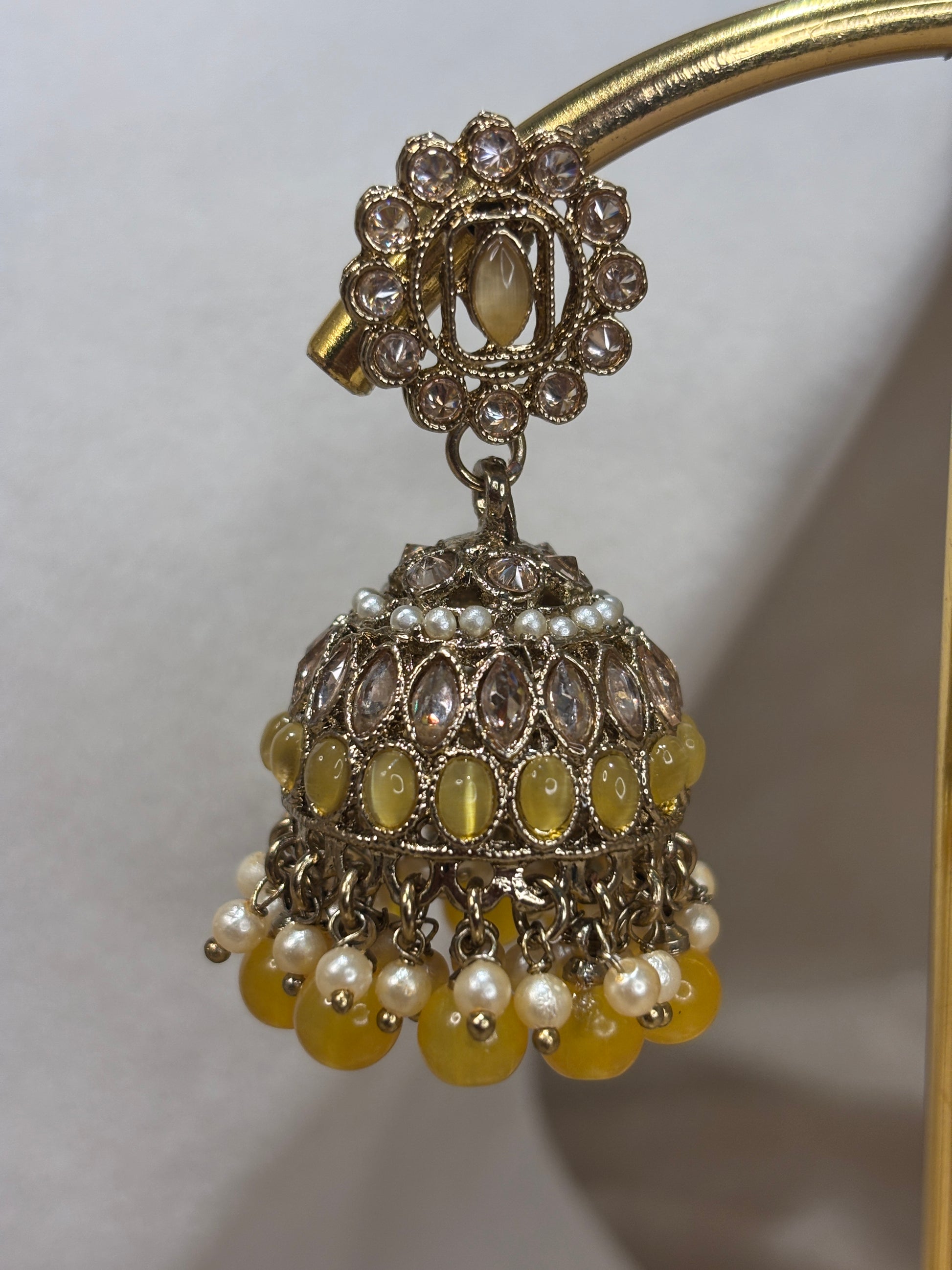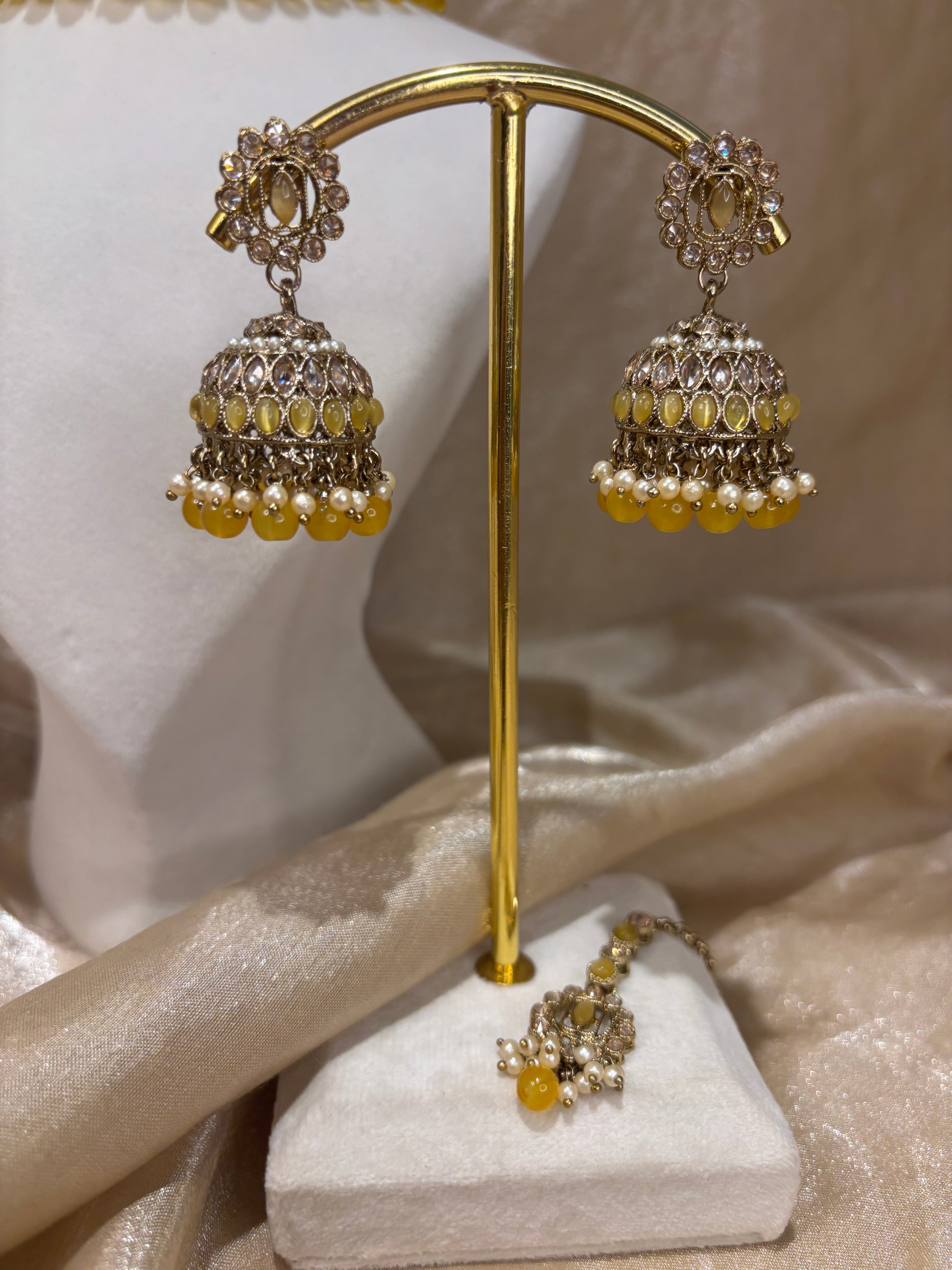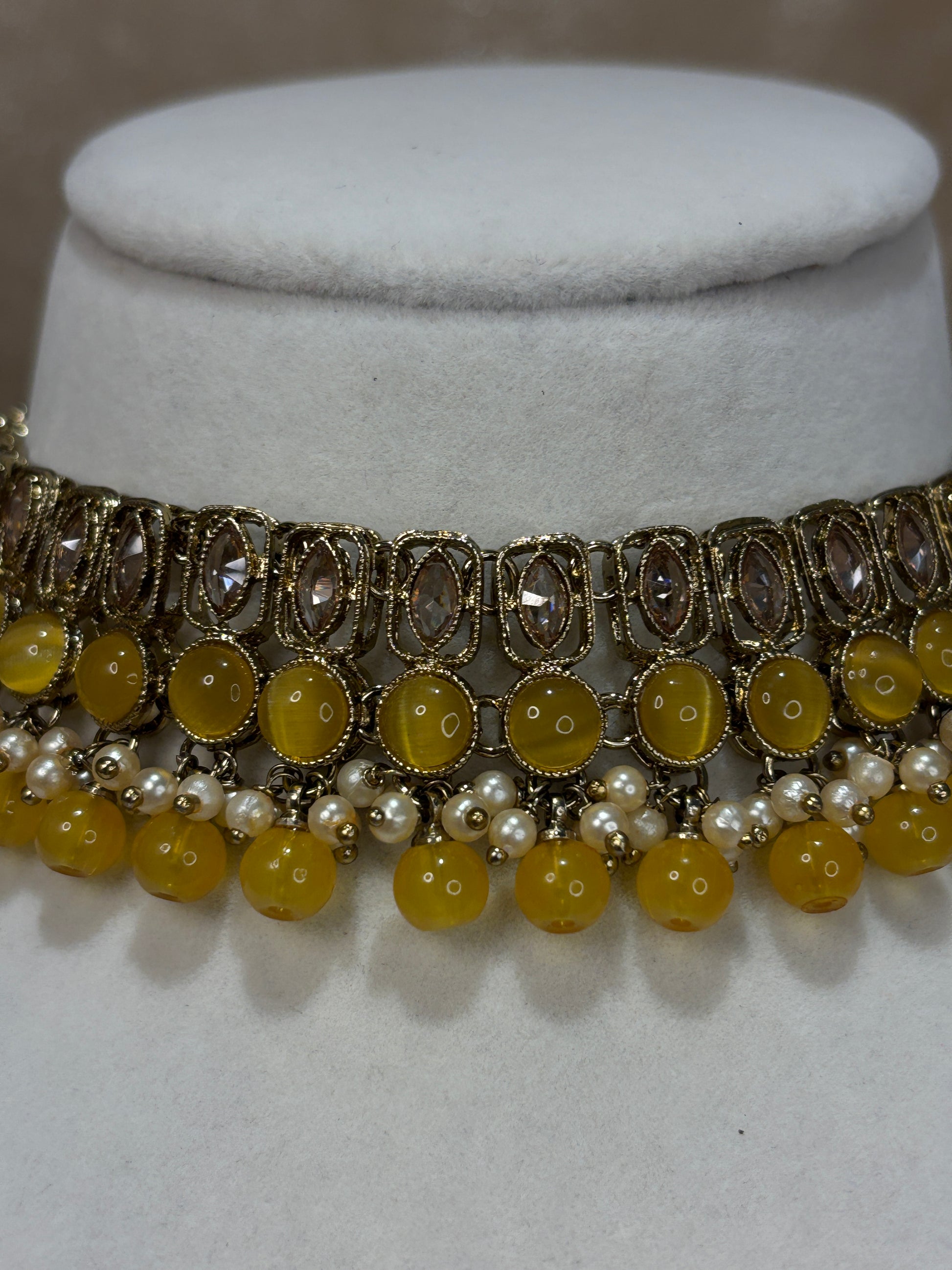 Yellow choker set with pearl details; can be worn as a necklace or choker