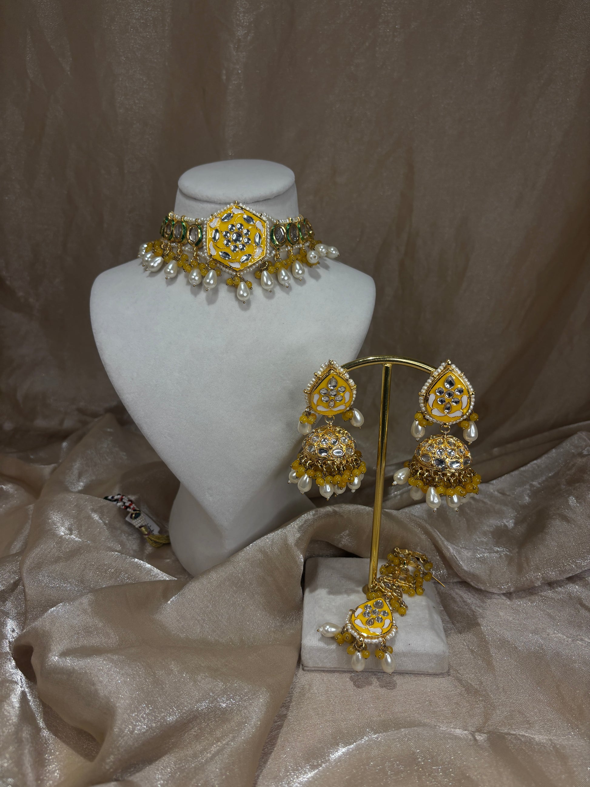 Yellow kundan choker set